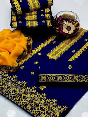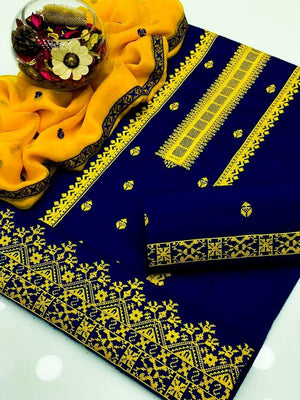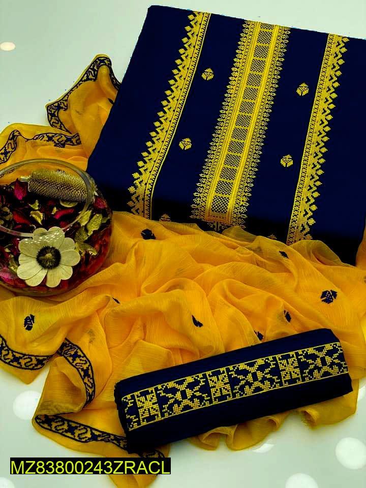 3 Pcs Women's Unstitched Cotton Embroidered Suit