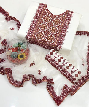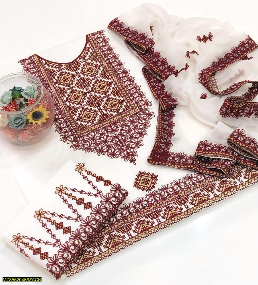 3 Pcs Women's Unstitched Cotton Lawn Embroidered Suit