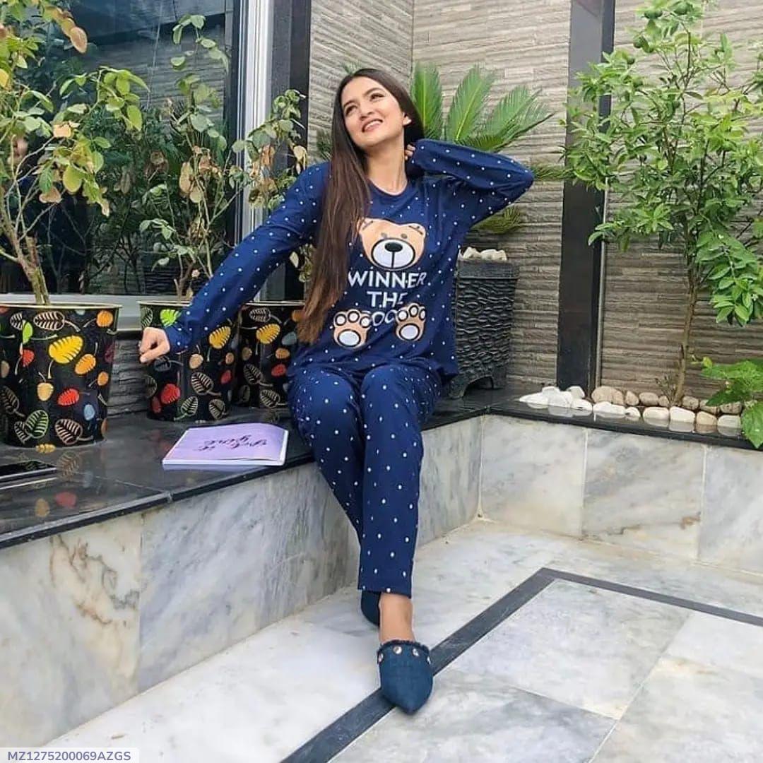 Experience ultimate comfort with our 2 Pcs Night Suit crafted from soft jersey fabric and designed with a stylish round neck. The charming printed pattern adds a touch of elegance, making it perfect for a cozy night in. Available in multiple sizes, this night suit is your go-to choice for relaxation and sleepwear.