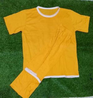 Experience ultimate comfort with our 2 Pcs Women's Night Suit, crafted from soft cotton jersey. This plain style features a round neck shirt and matching shorts, perfect for relaxing and unwinding. Ideal for lounging at home or enjoying a good night's sleep, this night suit offers both style and ease. Available in a vibrant yellow to brighten your evenings!